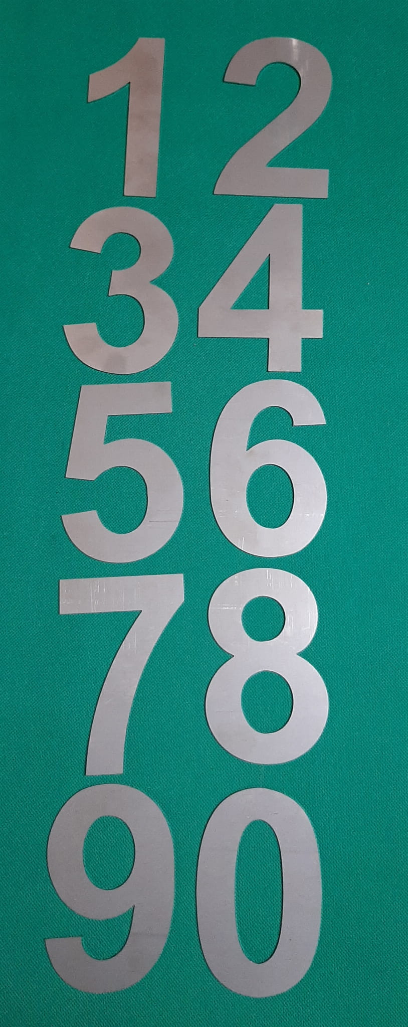Numery wycinane metodą laserową. Do ściany lub innego elementu budynku mocowane taśmą dwustronną (w zestawie).