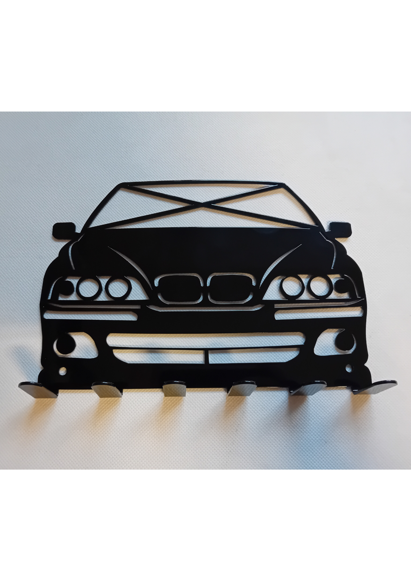 Wieszak dla pasjonatów marki BMW to stylowy i funkcjonalny gadżet, który doskonale sprawdzi się w domu, garażu czy biurze fana niemieckiej motoryzacji. Jego design inspirowany kultowym modelem BMW podkreśli zamiłowanie do marki i doda wnętrzu charakteru. Posiada praktyczne haczyki – idealne na klucze do auta, smycze czy inne akcesoria. Świetny prezent, doskonały dla właścicieli i miłośników BMW. Wykonany jest z trwałych materiałów - stali malowanej proszkowo. Wieszak jest łatwy w montażu i może być zamontowany na ścianie za pomocą wkrętów lub taśmy klejącej. Prosty sposób montażu umożliwia szybkie i wygodne korzystanie z wieszaka od razu po jego zakupie.
