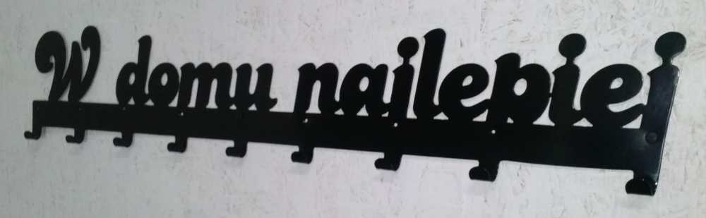 Nie odpowiada Ci czcionka, a może szerokość wieszaka lub ilość haczyków, ale koniecznie chciałbyś stylowy wieszak z napisem "W domu najlepiej" albo z zupełnie innym napisem- nic prostszego!!!- napisz do nas, złóż zamówienie, a my wykonamy wieszak specjalnie dla Ciebie!!!