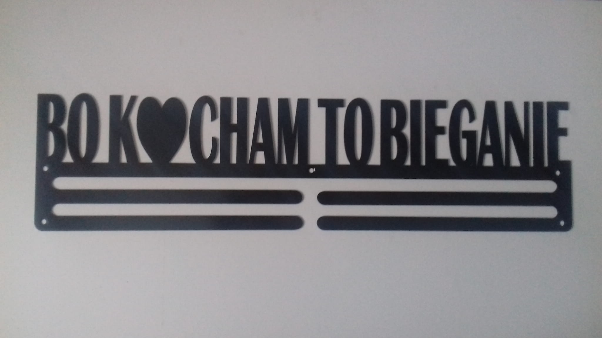 Przedstawiamy prosty wieszak na medale dla tych co kochają sport, kochaja aktywność fizyczną, kochają bieganie :) - wieszak na medale z napisem Bo Kocham To Bieganie