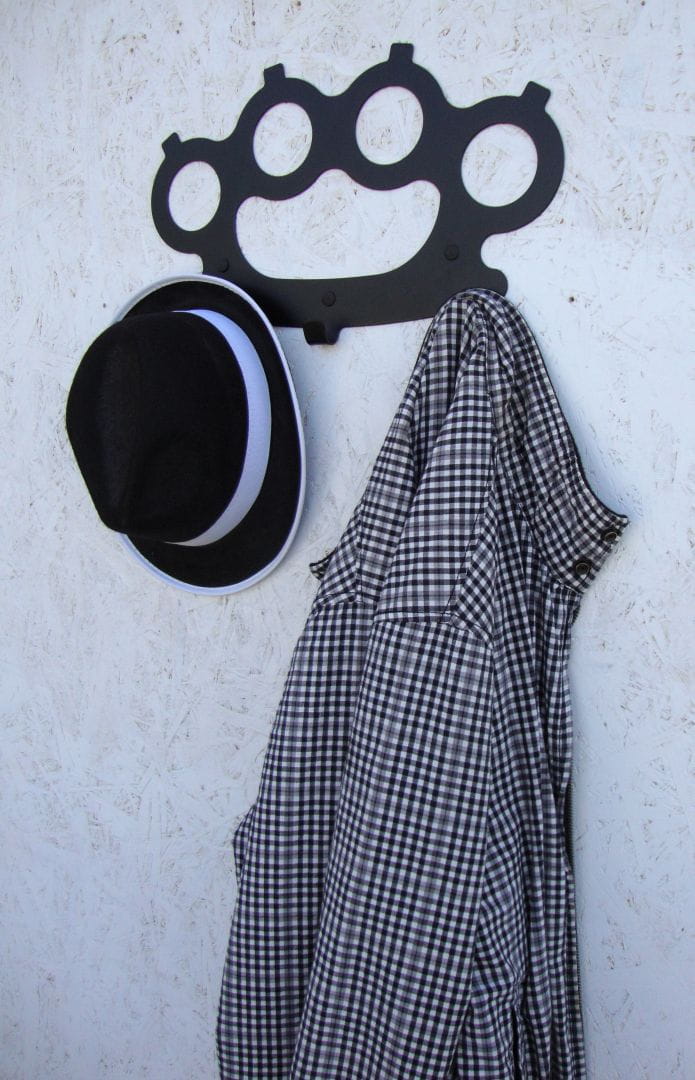 Oryginalny wieszak na ubrania w kształcie kastetu.